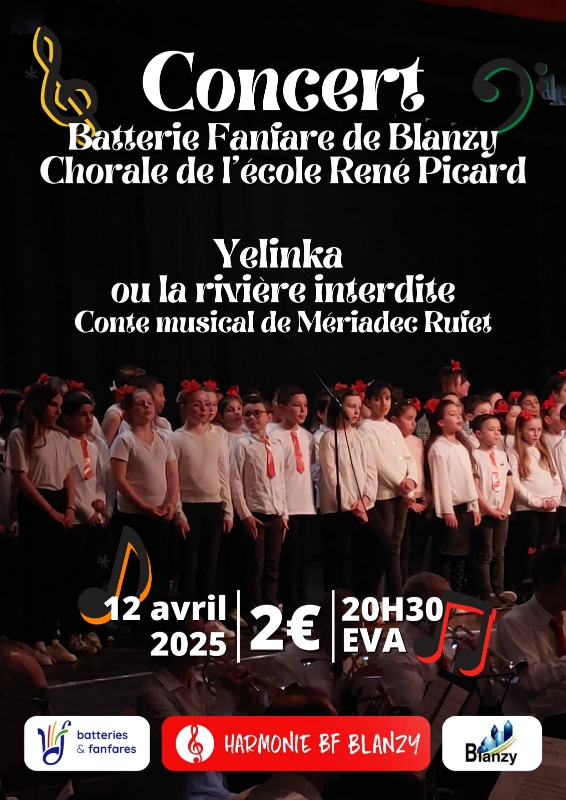 La Chorale de l’école René Picard de Blanzy et l’orchestre de batterie-fanfare vous présentent « Yelinka ou la Rivière Interdite », conte musical de Mériadec Rufet.