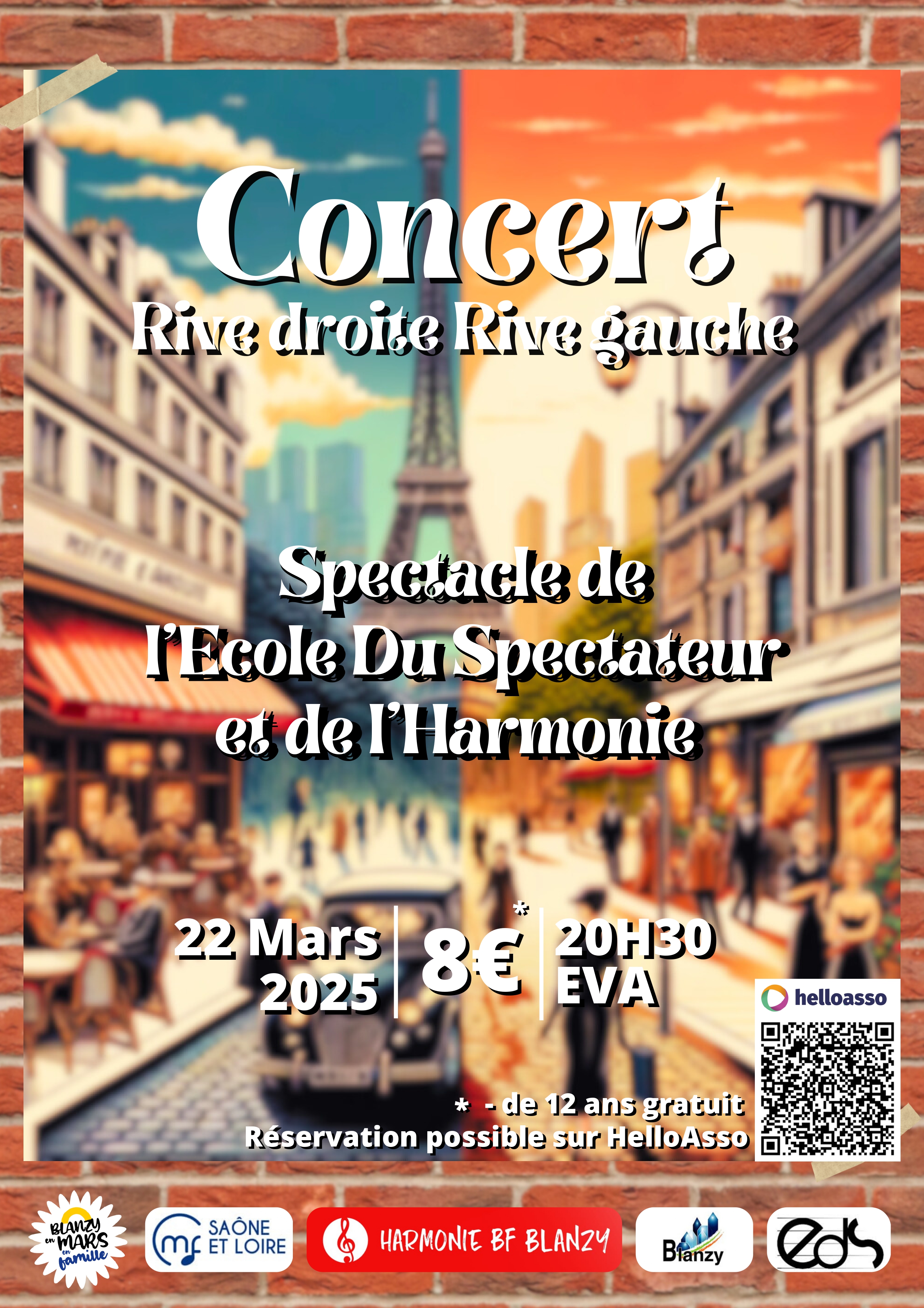 L’Ecole du Spectateur & l’Harmonie Municipale de Blanzy vous proposent une version unique du spectacle Rive Droite, Rive Gauche.